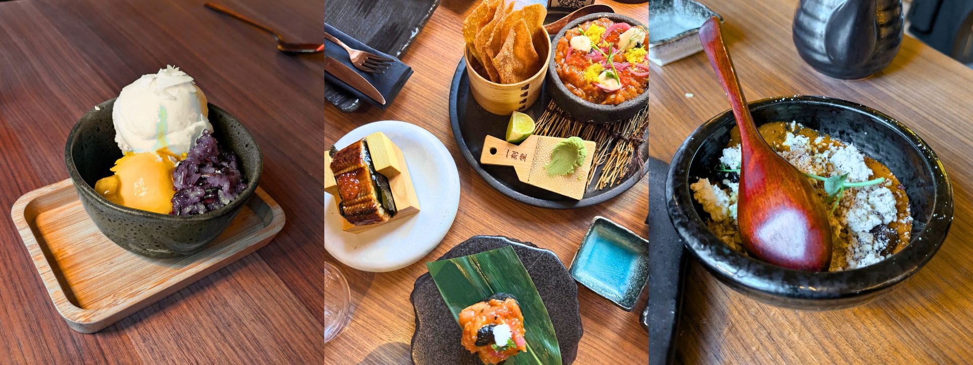 Kada uđete u taj prostor u kojem su bili Hard Rock Caffe, Brewbites, a sada Kiyomi, prva stvar koju primijetite je staklena stijena prema kuhinji. Robata roštilj iza stakla, kuhari koji rade a da vas ne gledaju, para koja se diže s kontroliranom teatralnošću. Prostor oko vas je drveni, topao, meko osvijetljen — sve očito dizajnirano da djeluje nenametljivo, ali s pozamašnim budžetom koji se ne može sakriti. Tu je i življa urbana glazba koja podsjeća na kakav lounge bar, ali nije pretjerano smetala.