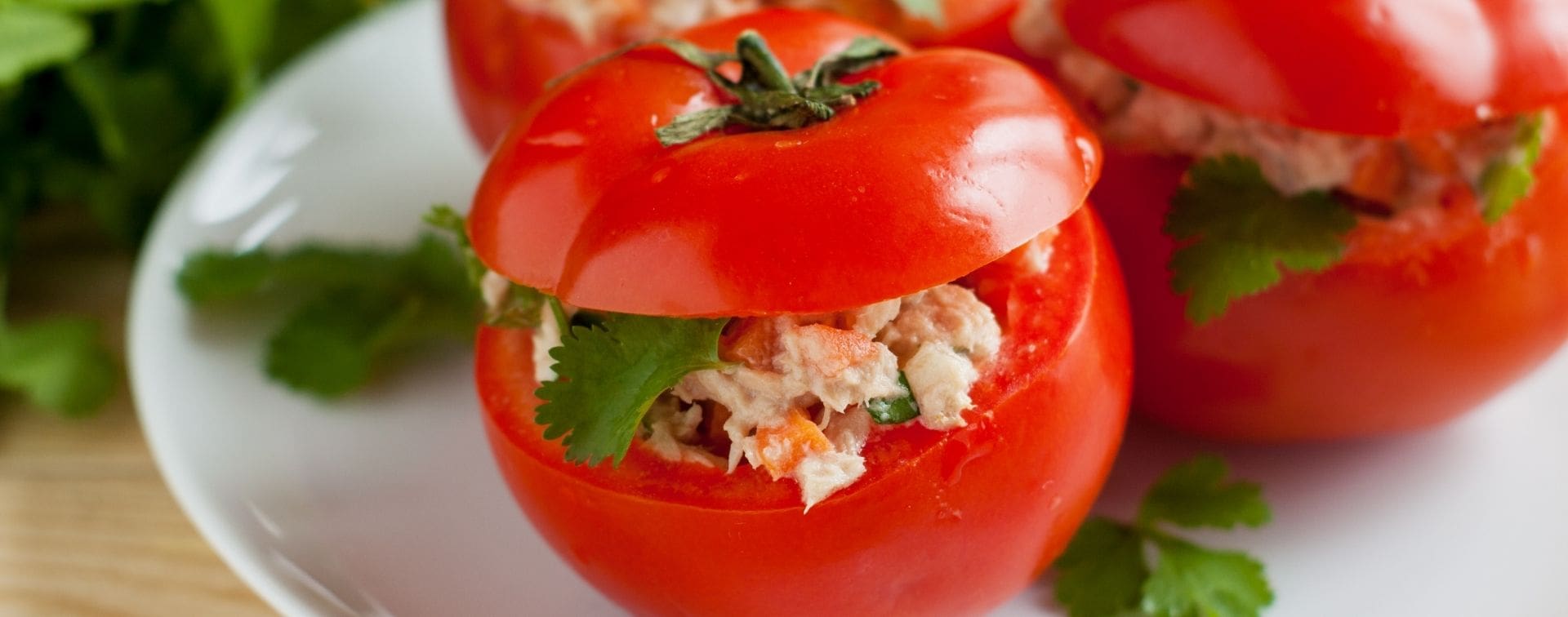 Odreži gornji dio svake rajčice poput kapice. Žlicom lagano izdubi sredinu, pazeći da zadržiš čvrstinu stijenki. Isjeckaj izdubljenu sredinu i pomiješaj sa žličicom pesta i nasjeckanom kuglicom mozzarelle pa prelij s nekoliko kapi maslinovog ulja. Stavi punjenje u rajčicu, vrati kapicu na vrh i posluži ohlađeno, uz svježi kruh za umakanje.
